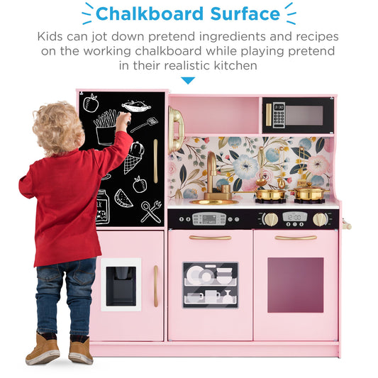 Pretend Play Corner Kitchen Wooden Toy Set for Kids w/ Lights, Sounds