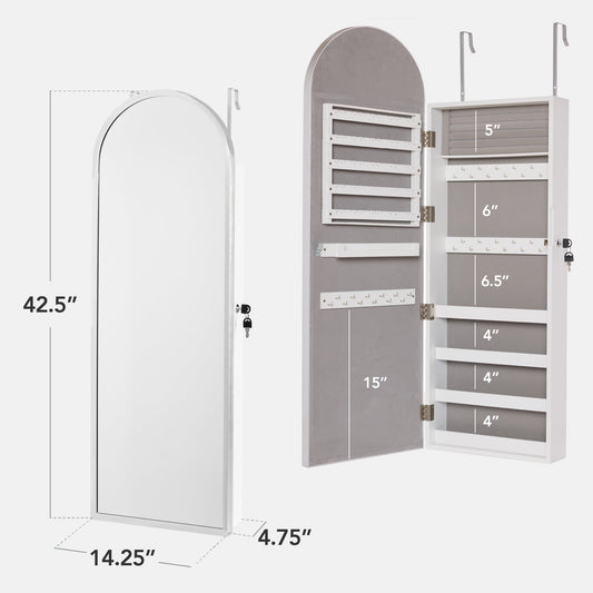 Door/Wall Mounted Arch Mirror Jewelry Armoire, w/ Metal Frame, Built-In Lock