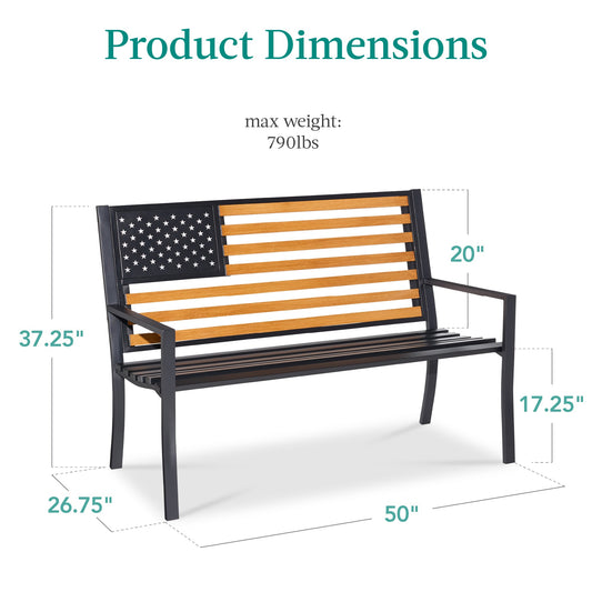 Indoor Outdoor Steel Bench w/ American Flag Backrest, 790lb Capacity