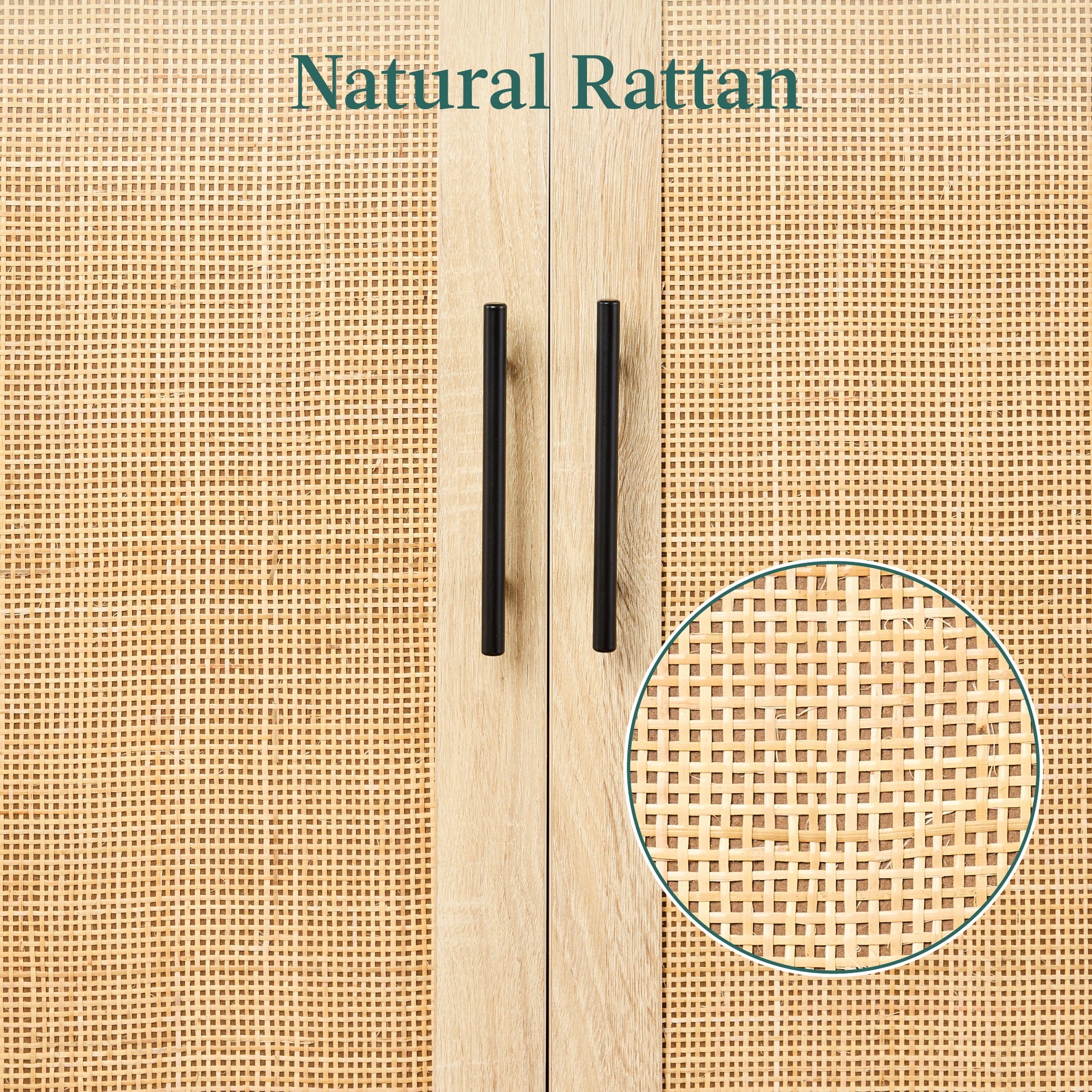 2-Door Natural Rattan Storage Cabinet w/ Adjustable Shelves - 34 x 24in