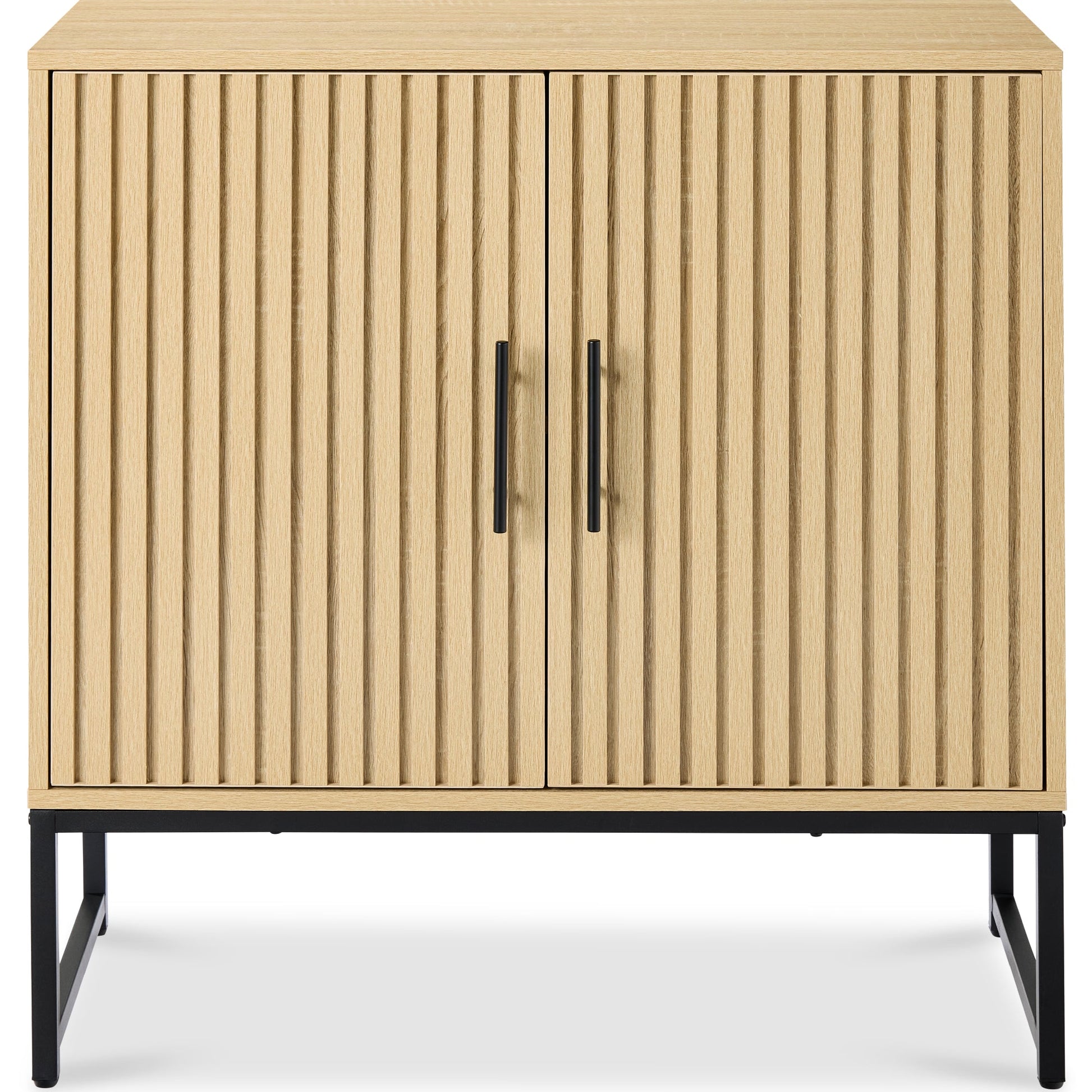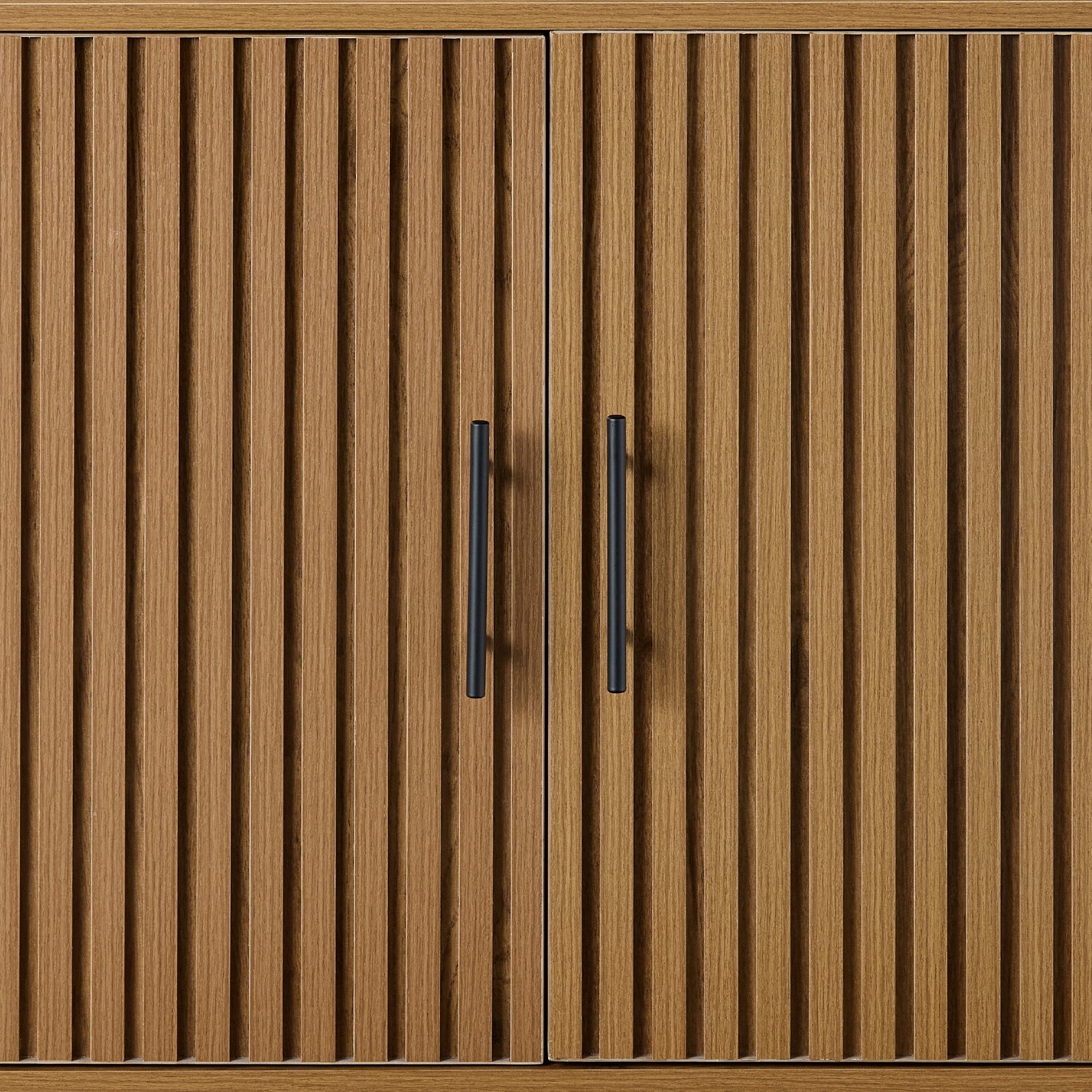 2-Door Slatted Storage Cabinet Accent Furniture w/ Foot Pads