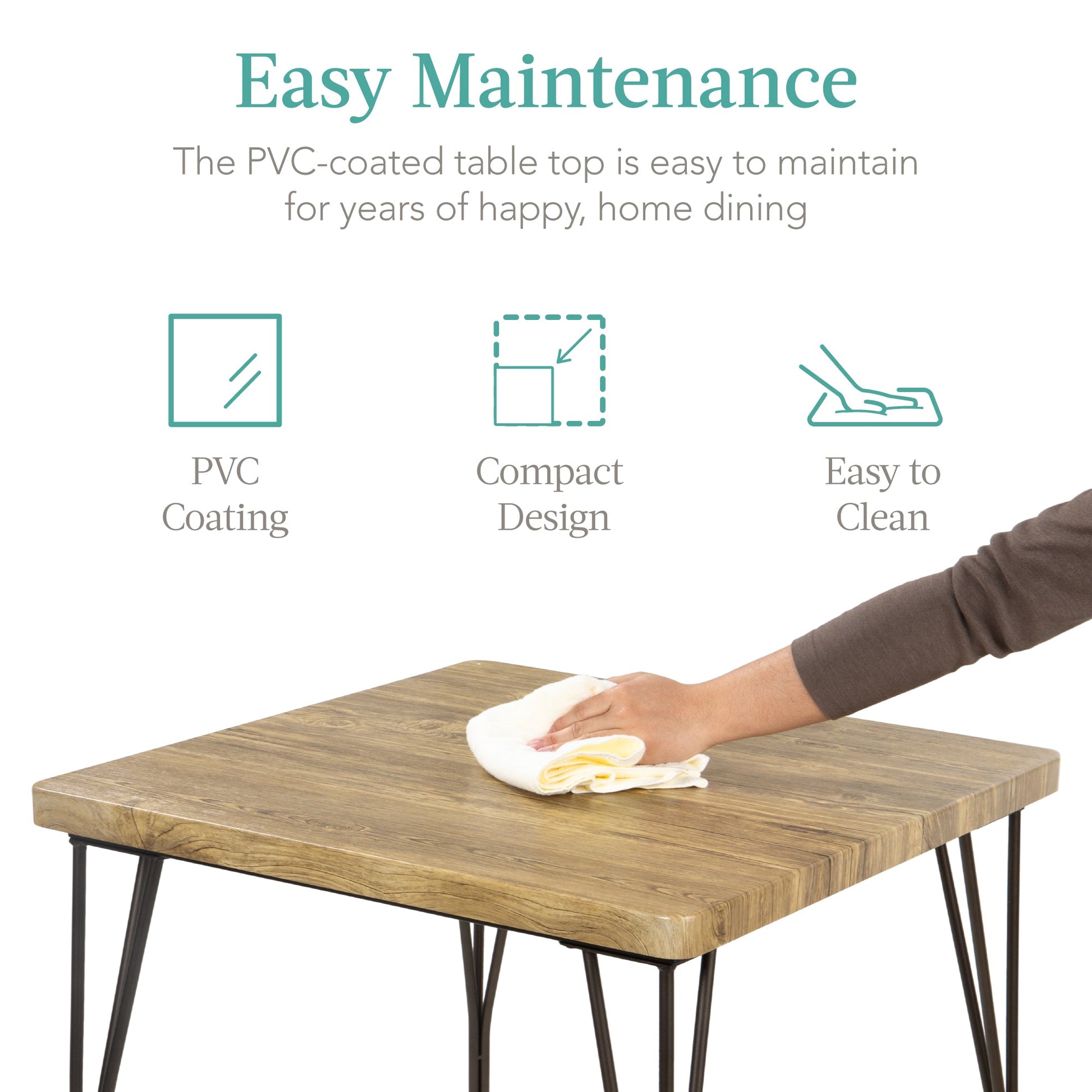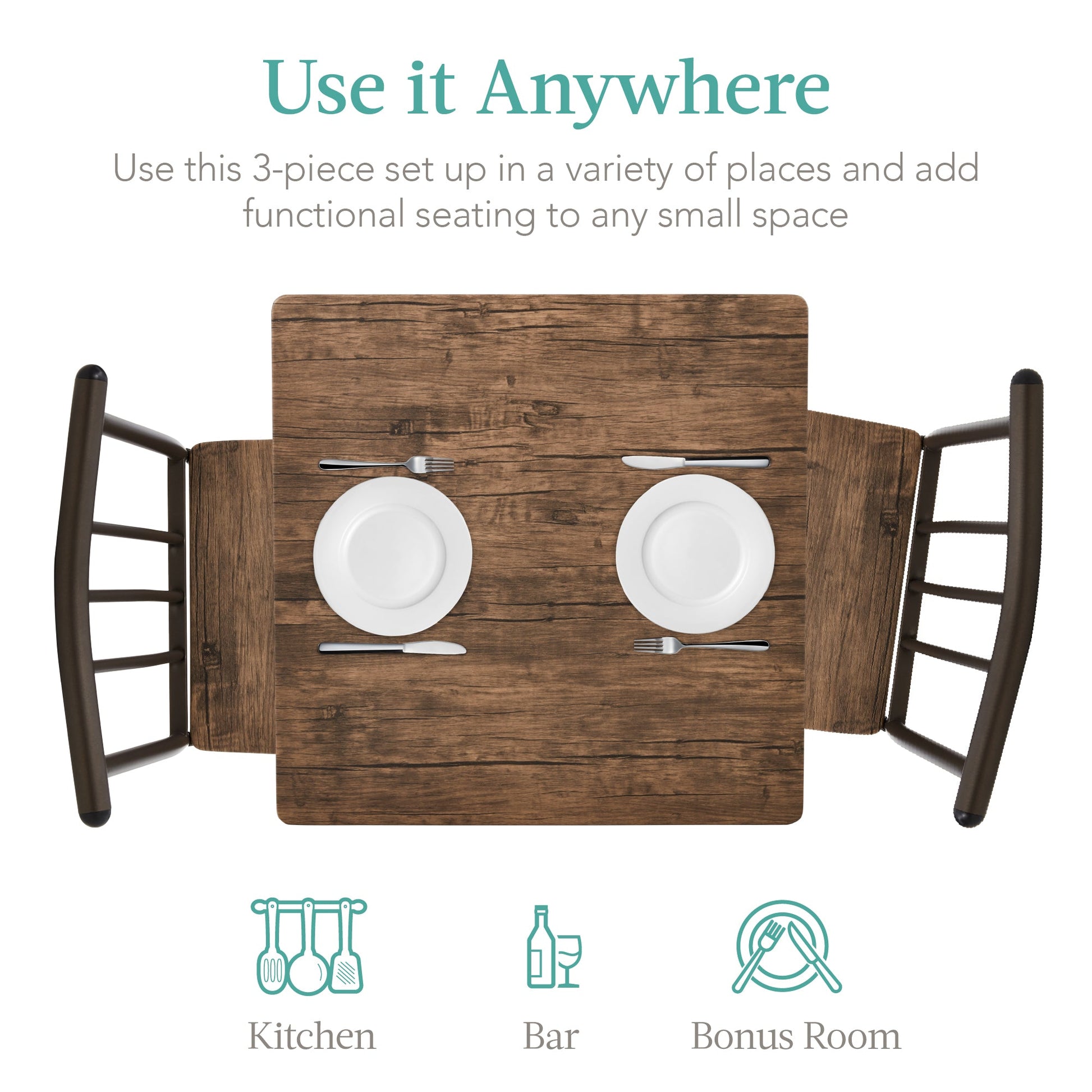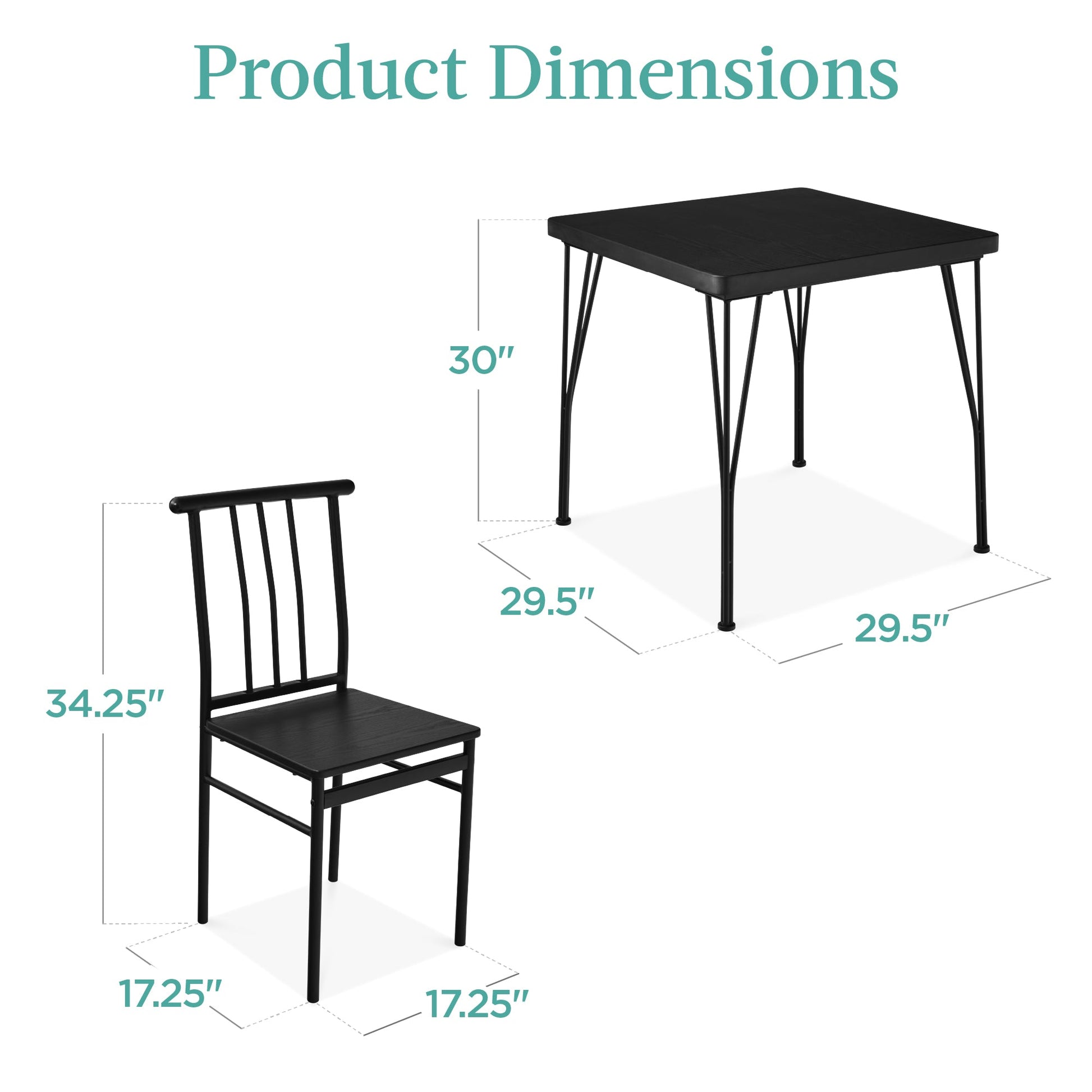 3-Piece Metal Wood Square Dining Table Furniture Set w/ 2 Chairs