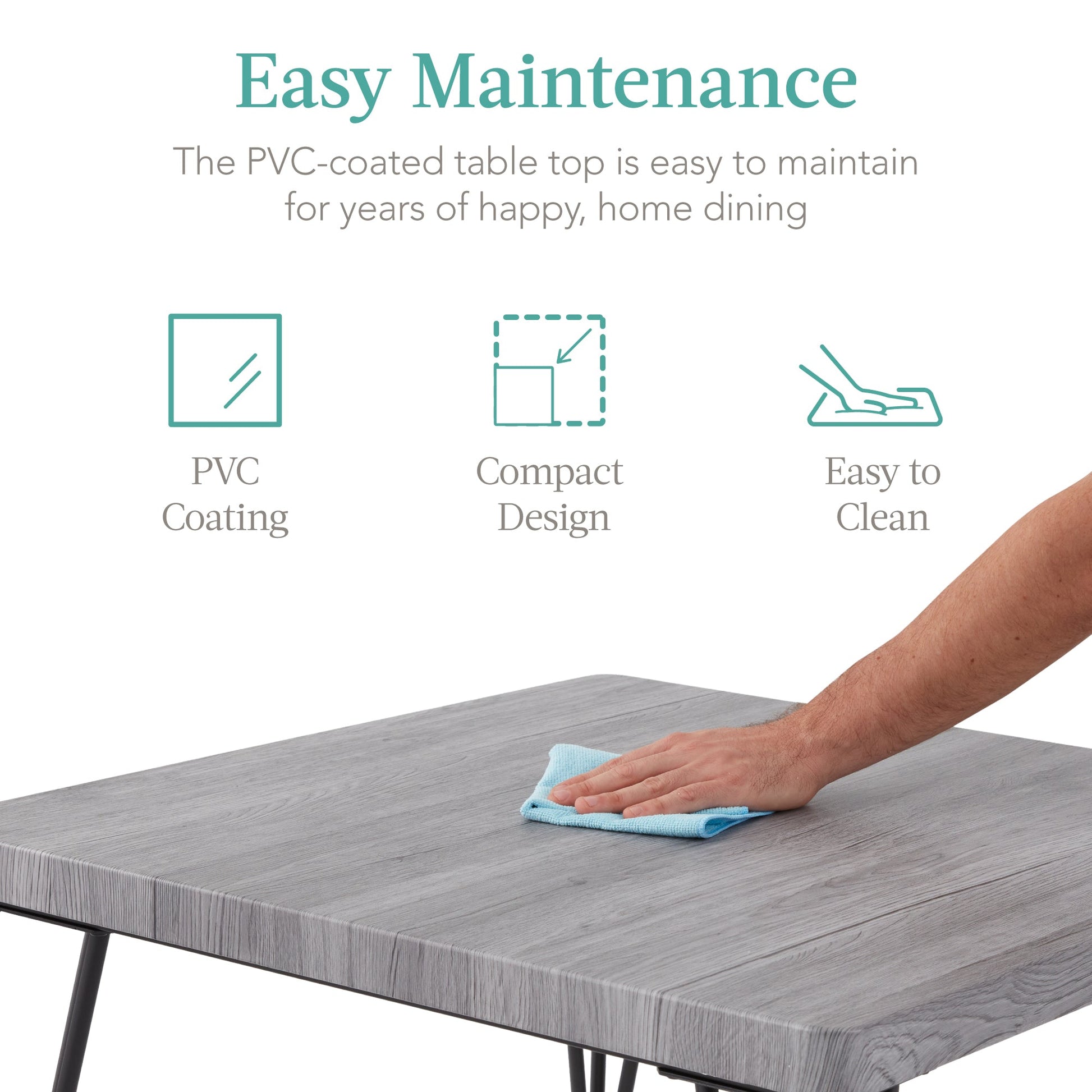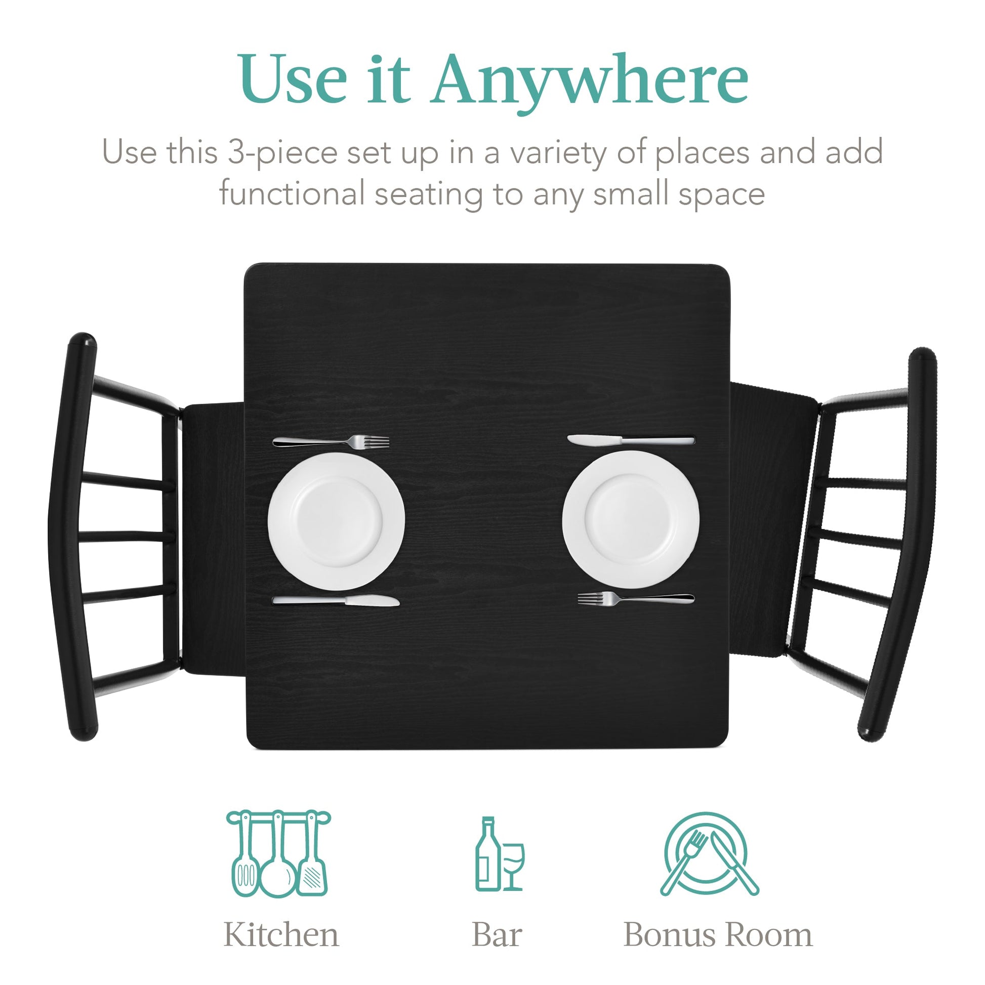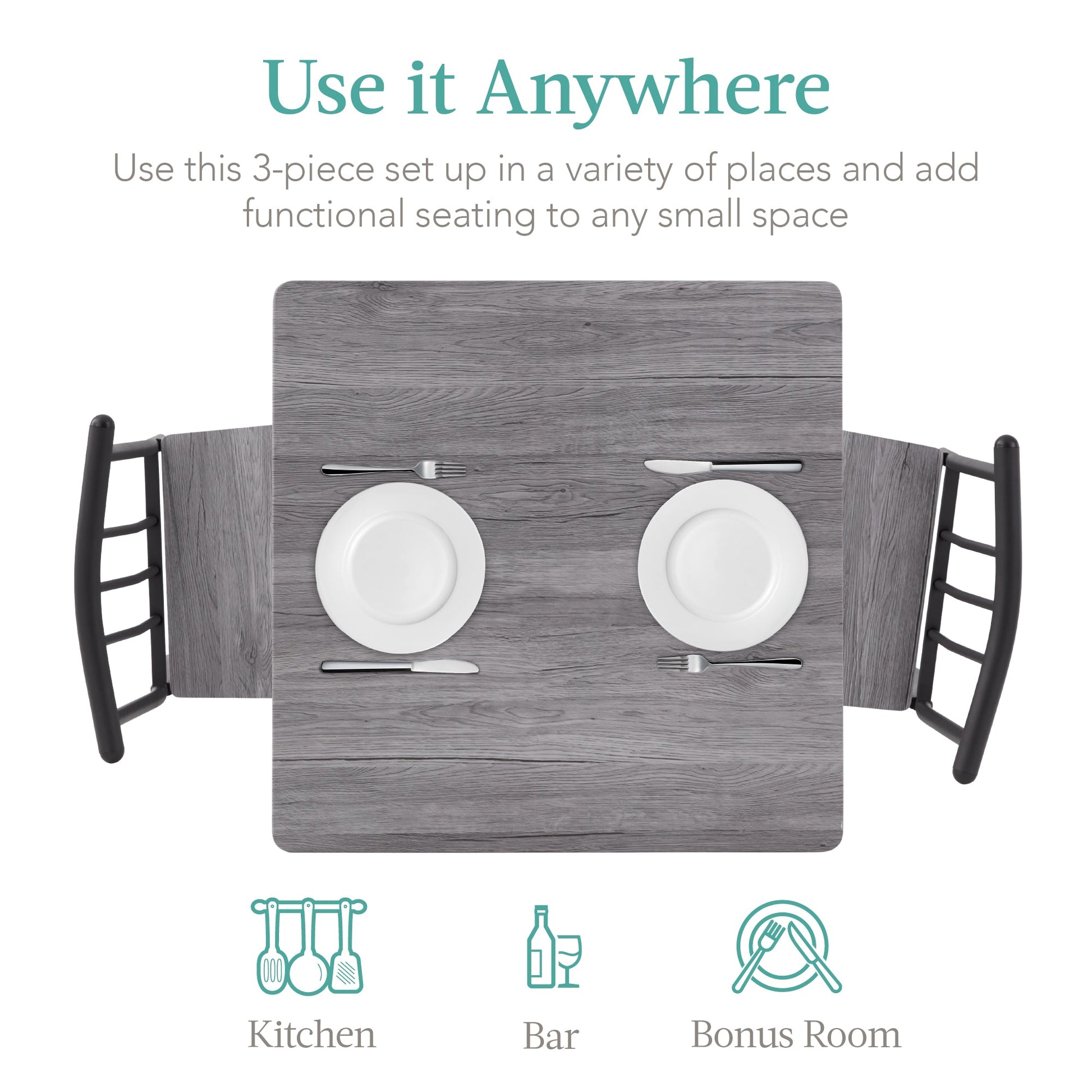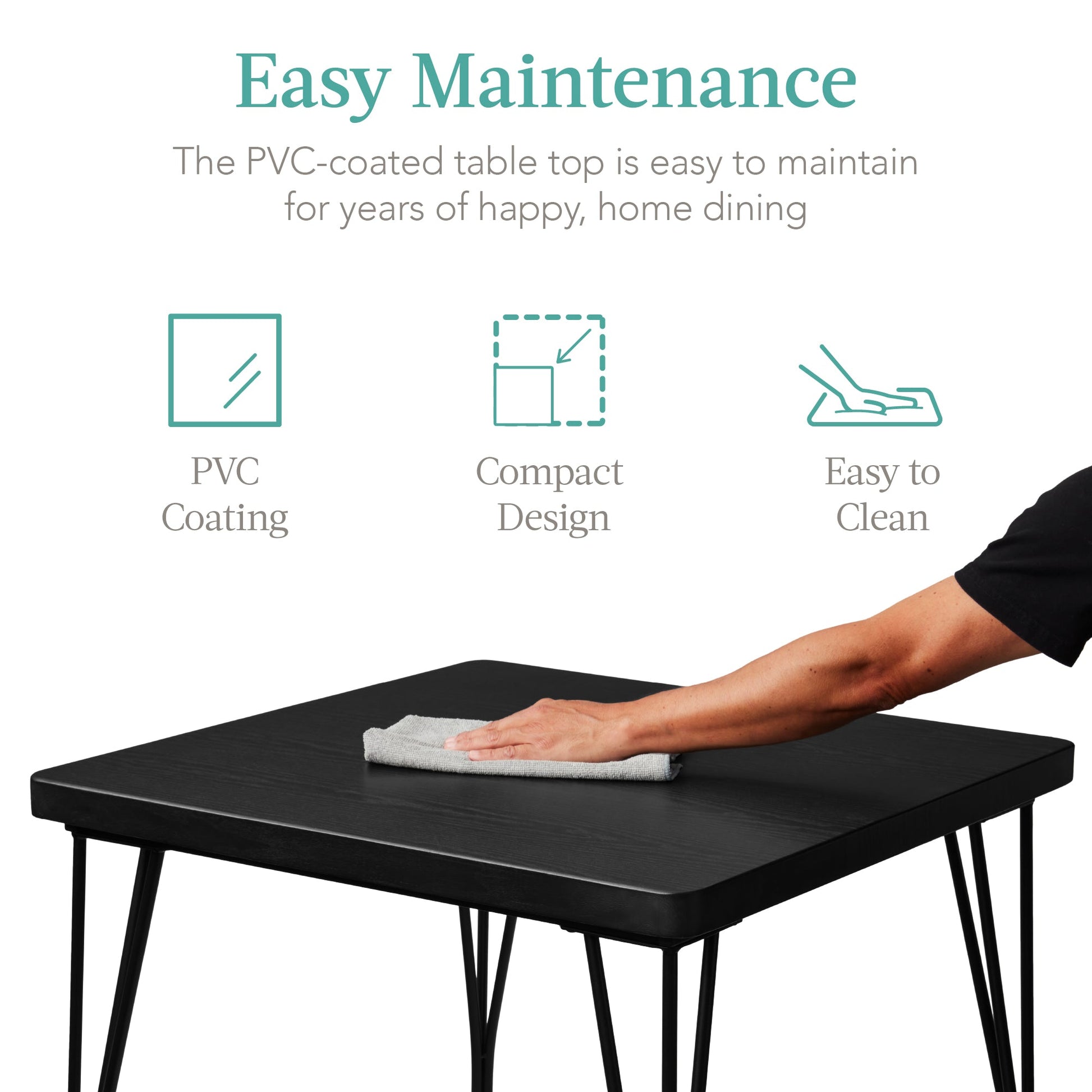3-Piece Metal Wood Square Dining Table Furniture Set w/ 2 Chairs