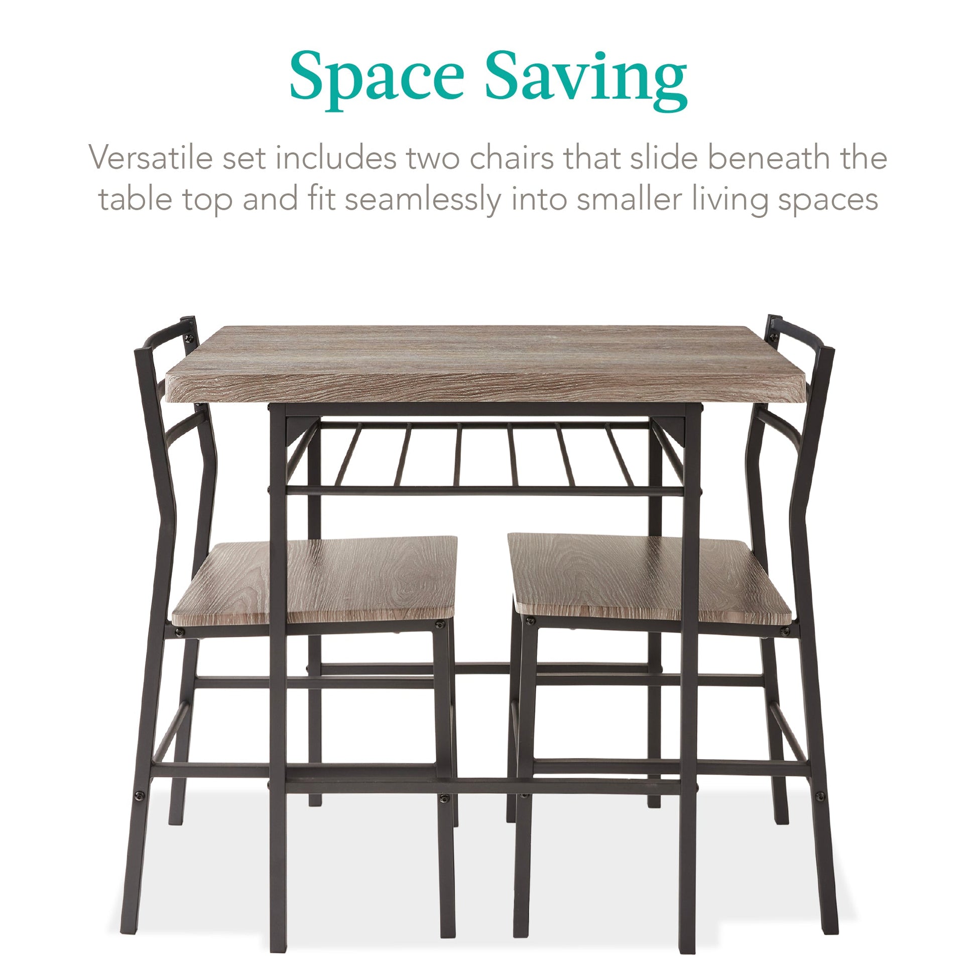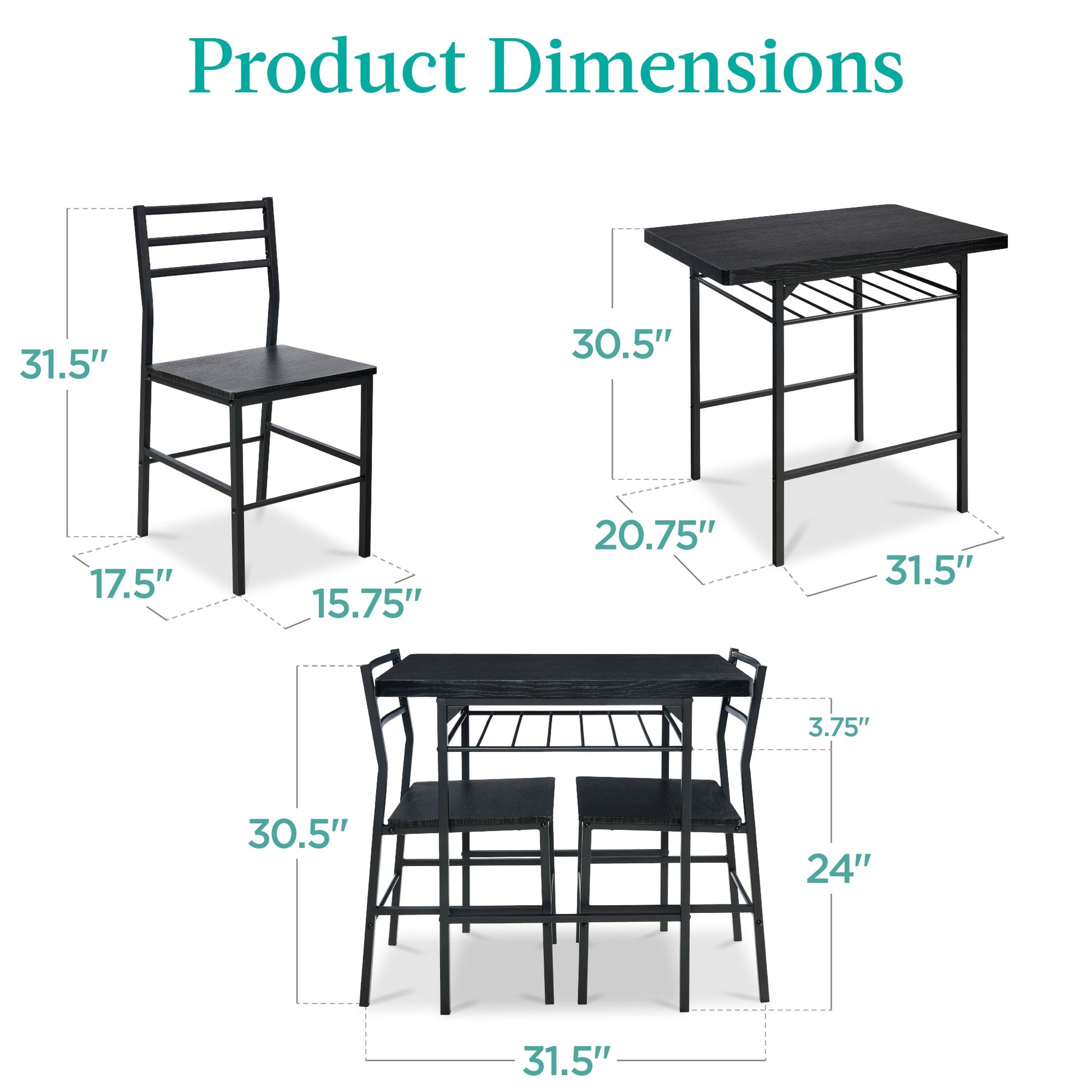 3-Piece Modern Square Dining Set w/ Storage Rack