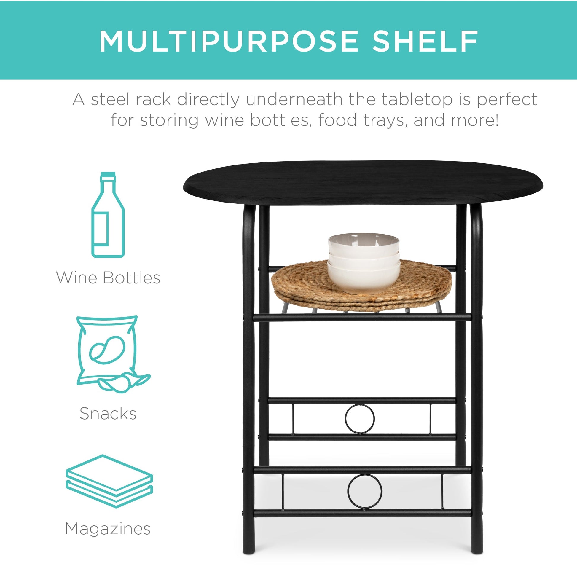 3-Piece Wooden Table & Chairs Dining Set w/ Lower Storage Shelf