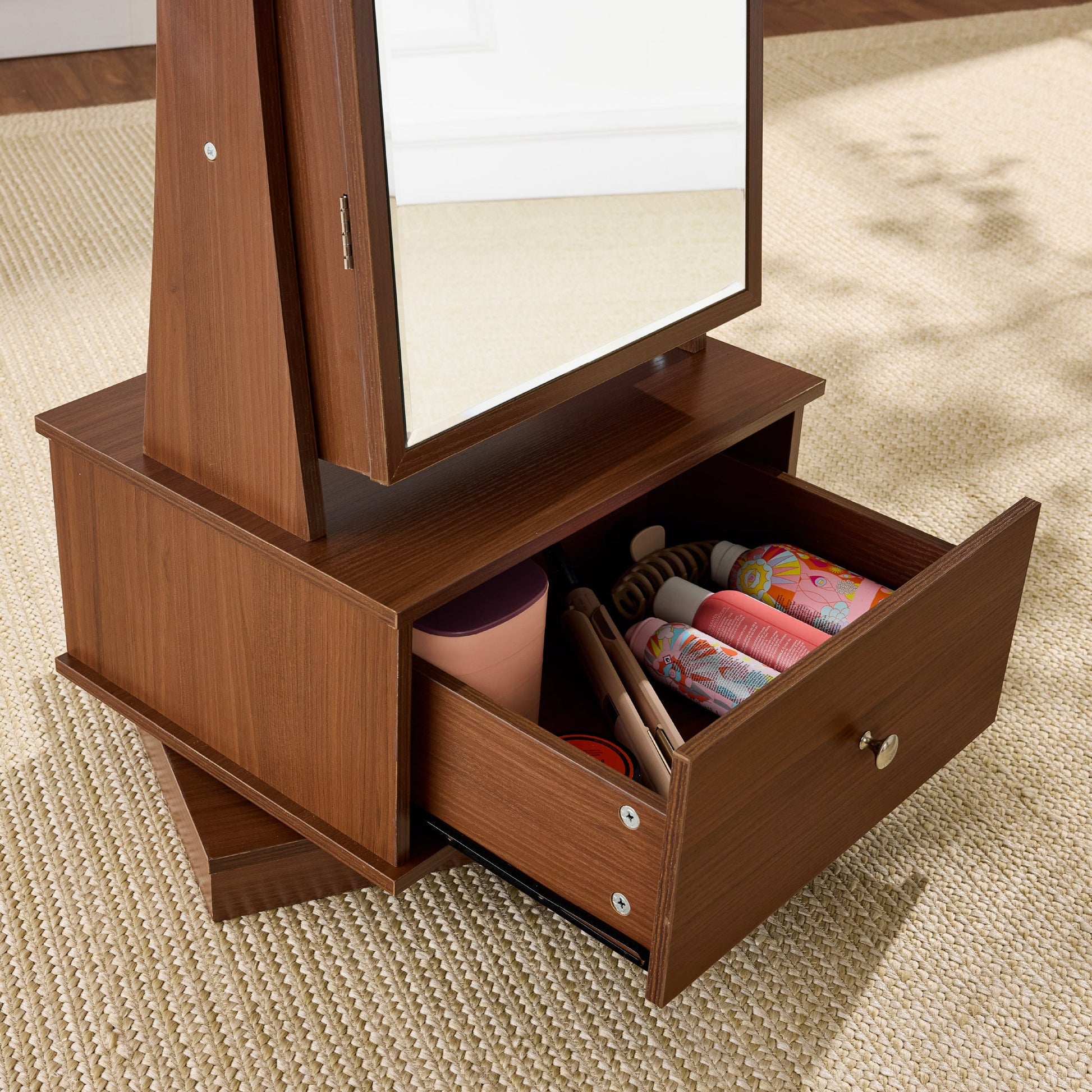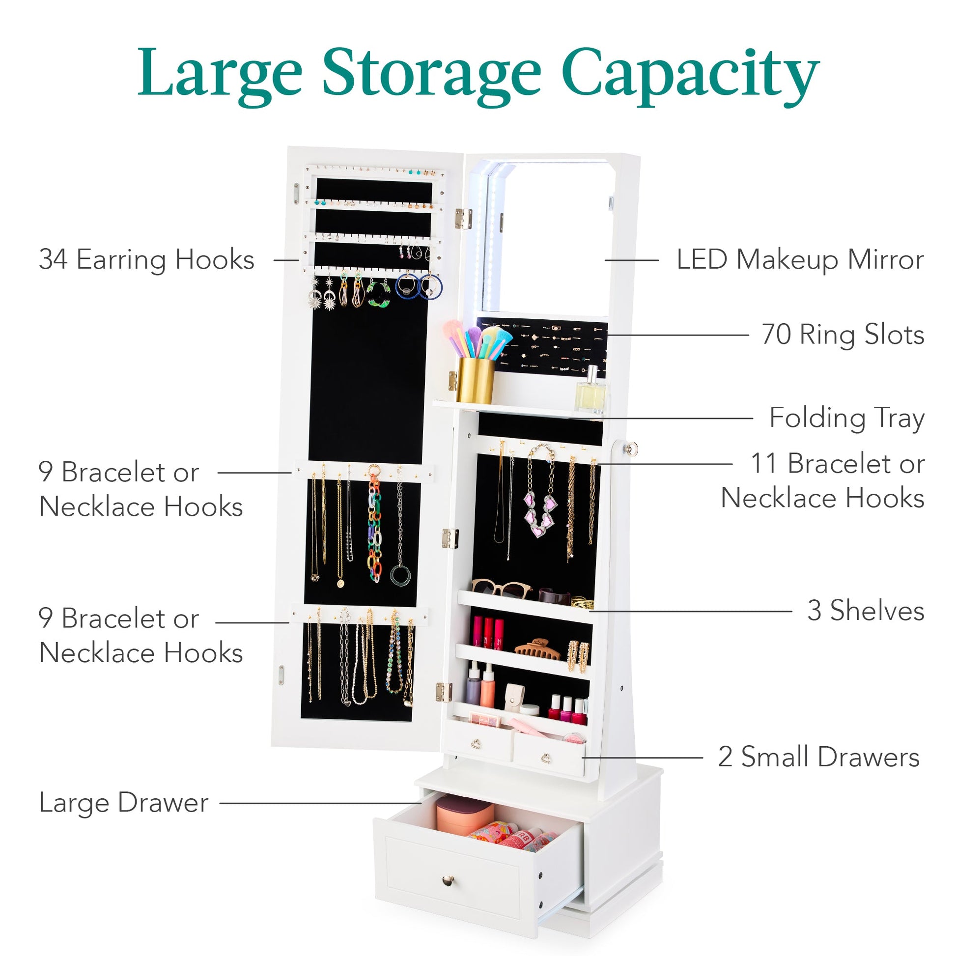 360 Swivel Mirrored Jewelry Cabinet Armoire w/ LED Lights, Mirror