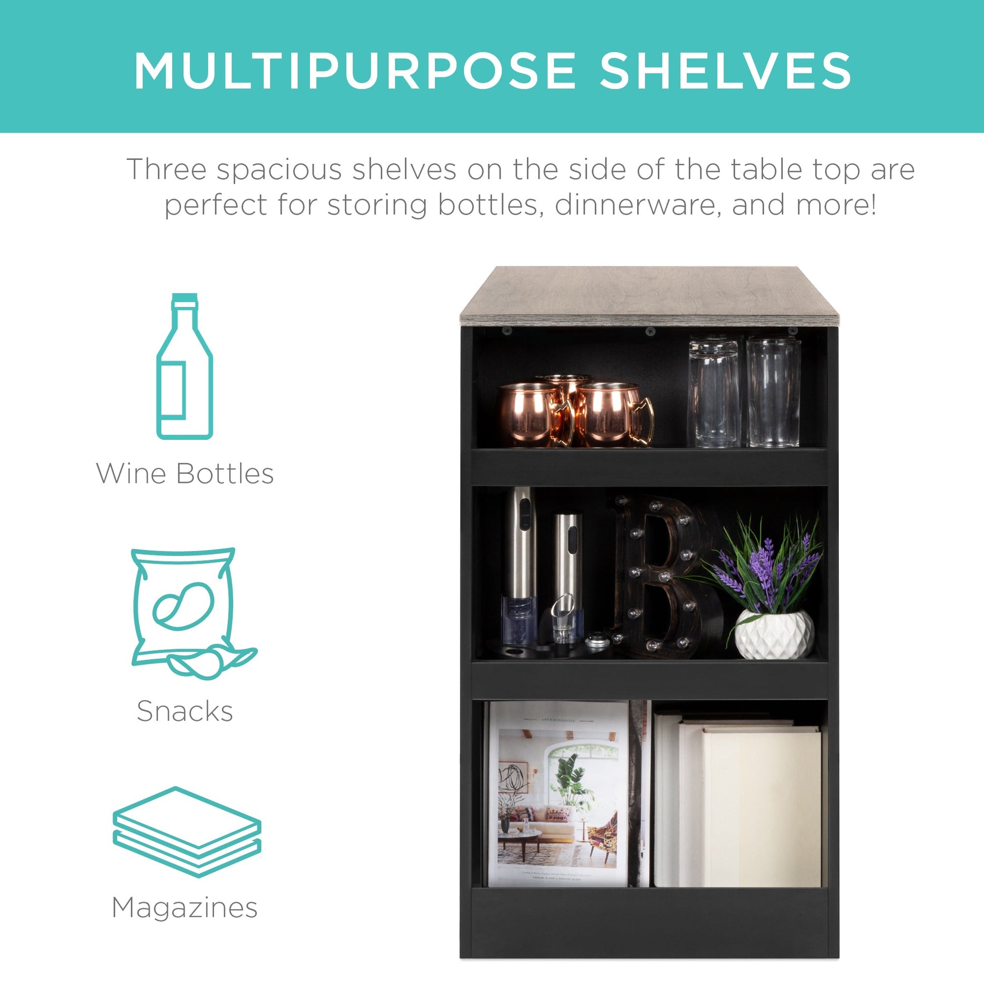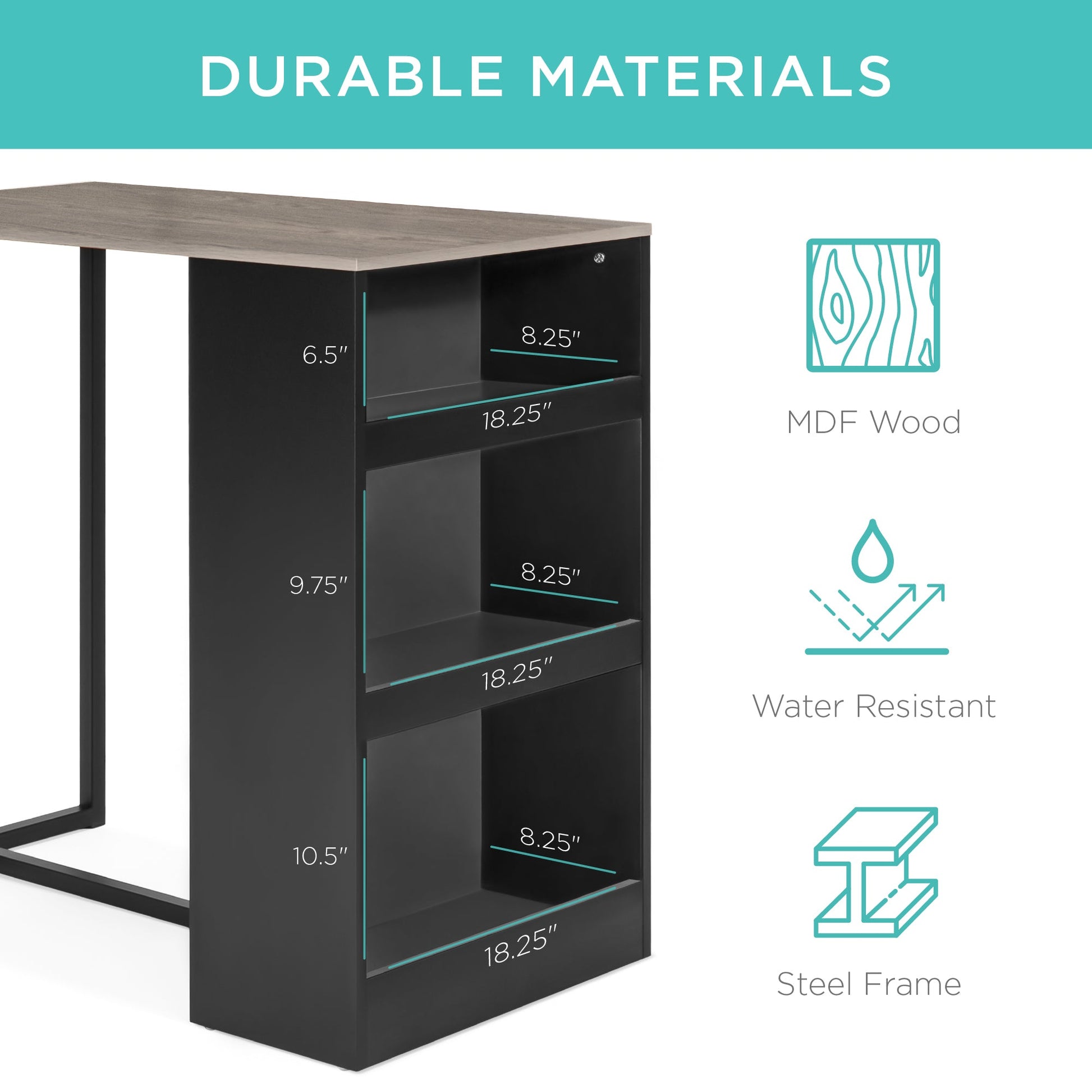 3-Piece Counter Height Kitchen Dining Table Set w/ Storage Shelves