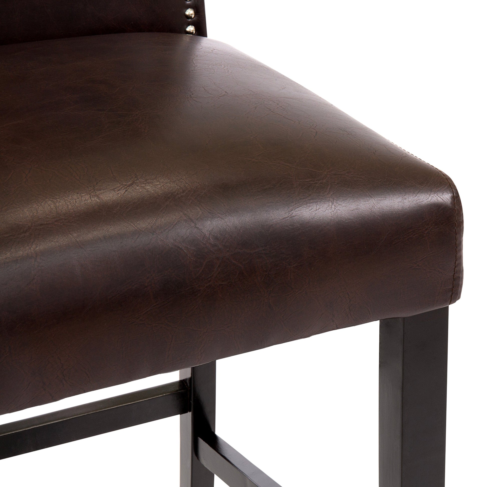 Set of 2 30in Faux Leather Counter Height Bar Stools w/ Studded Trim Back