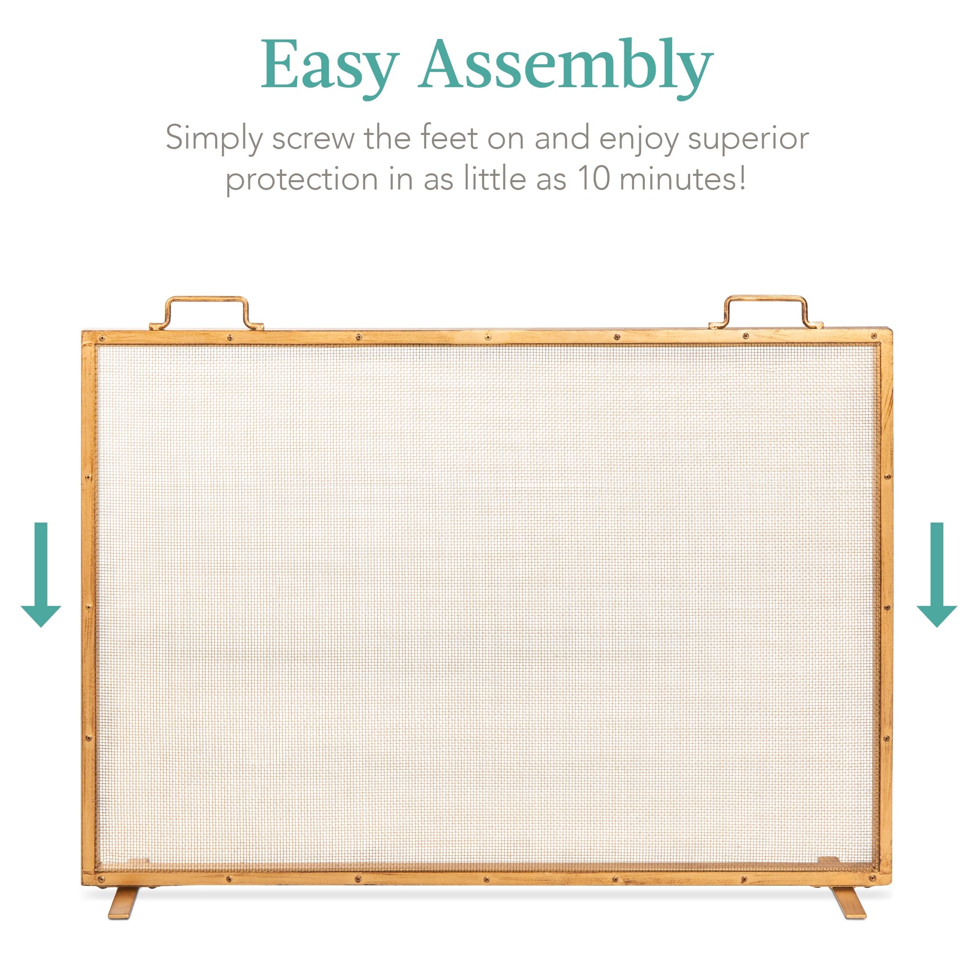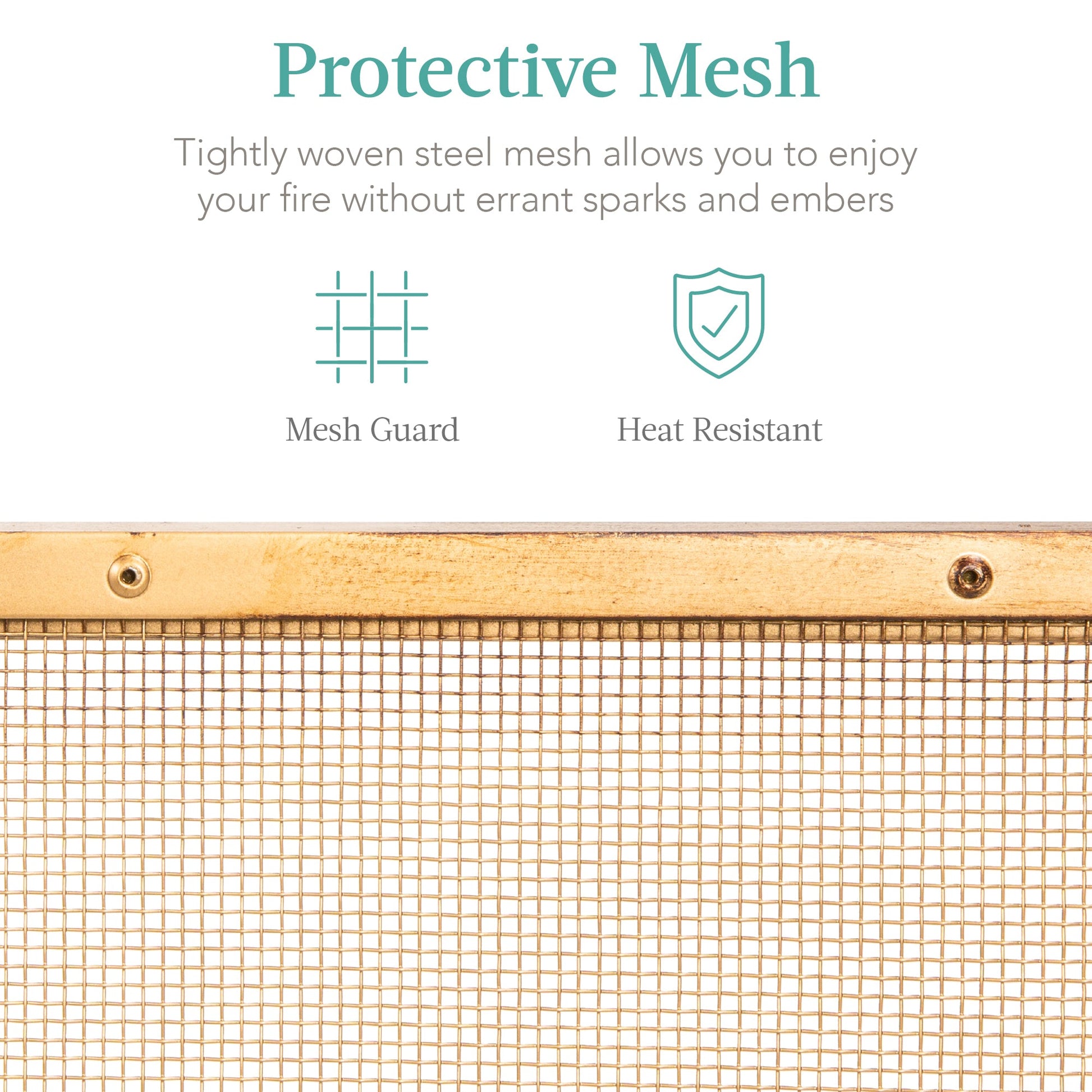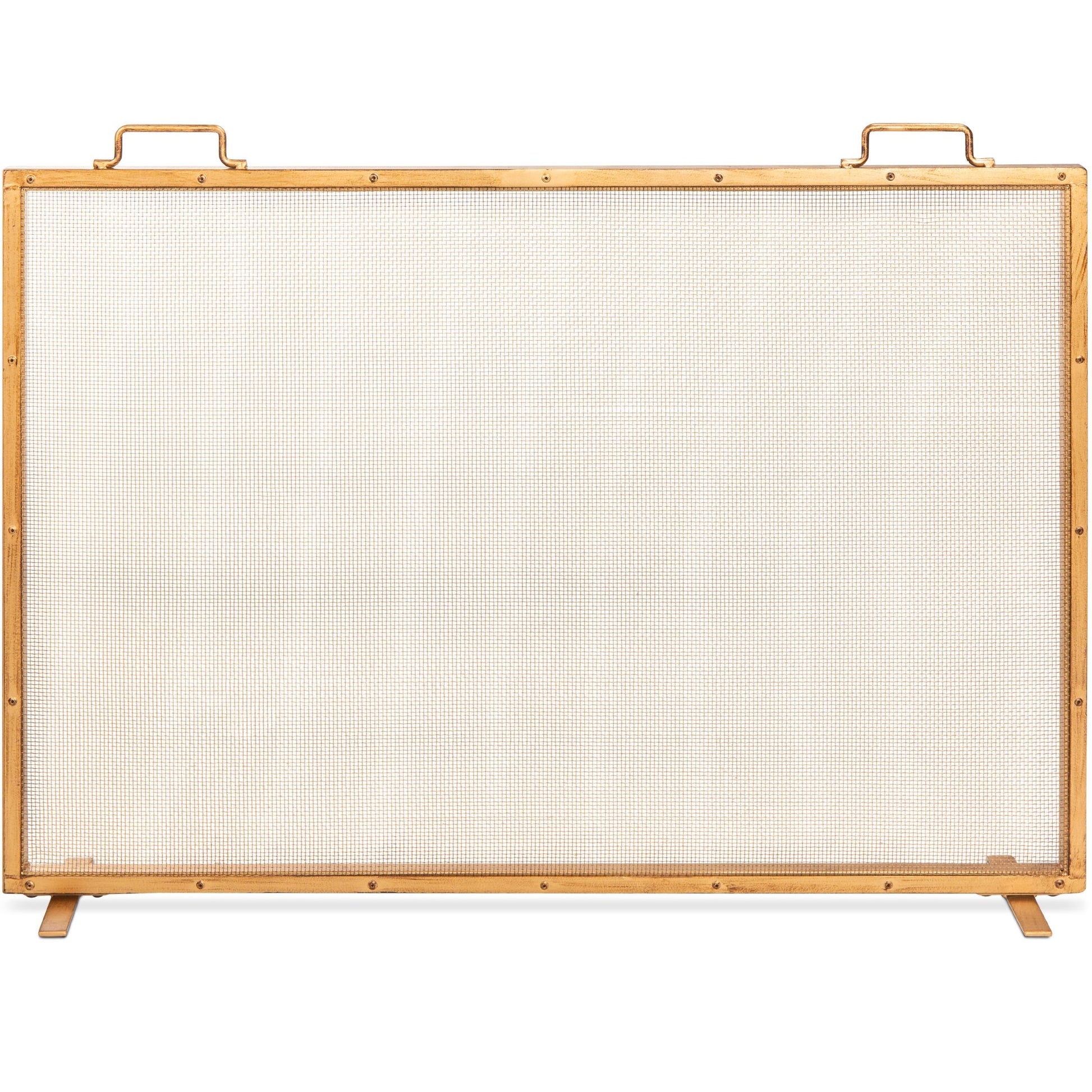 Single Panel Handcrafted Steel Mesh Fireplace Screen w/ Handles - 38x27in