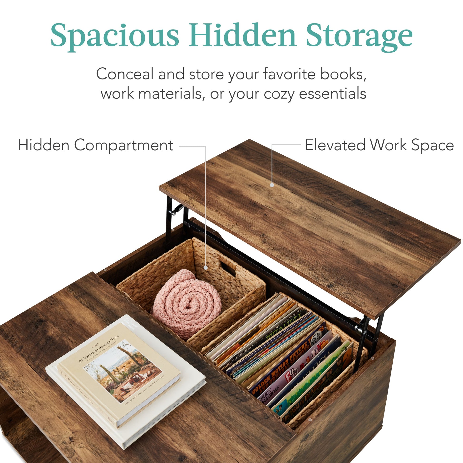 Square Rustic Modern Lift Top Coffee Table w/ Cubby